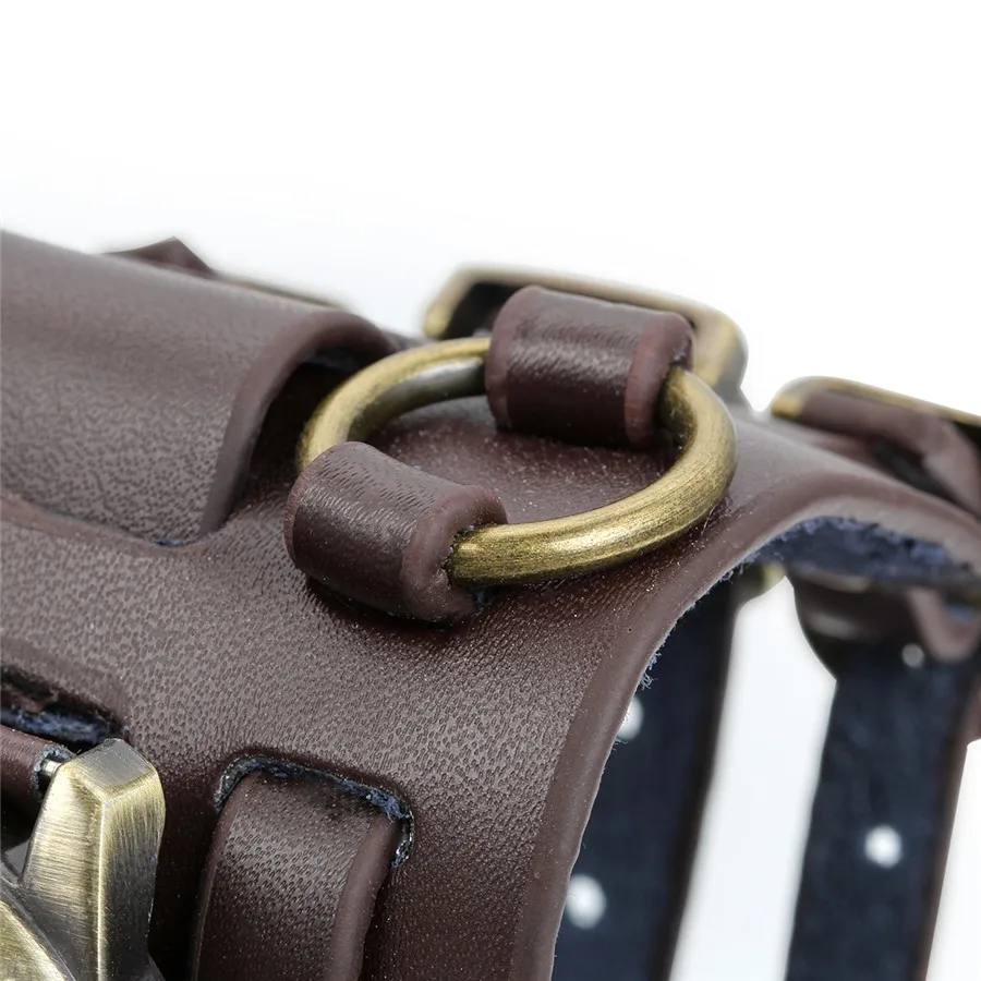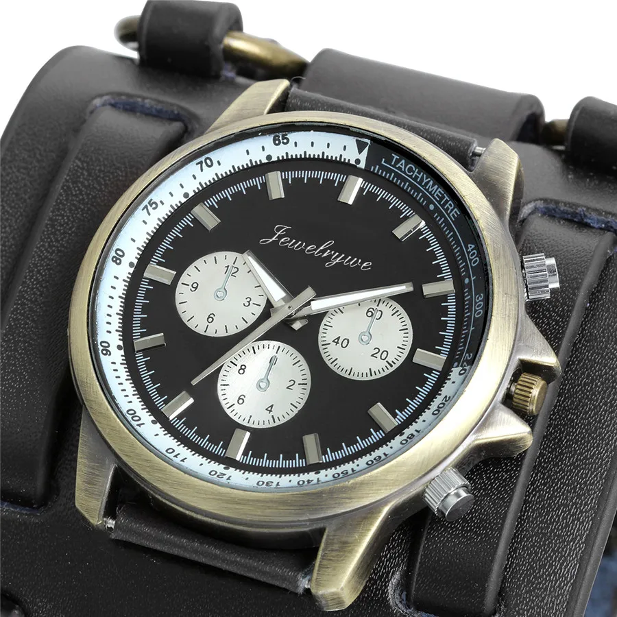 Lancardo Punk Retro Tachymetre Wide Strap Watches Men Punk Watch Leather Bracelet Quartz Wrist Watch For Men Women Gifts Clock